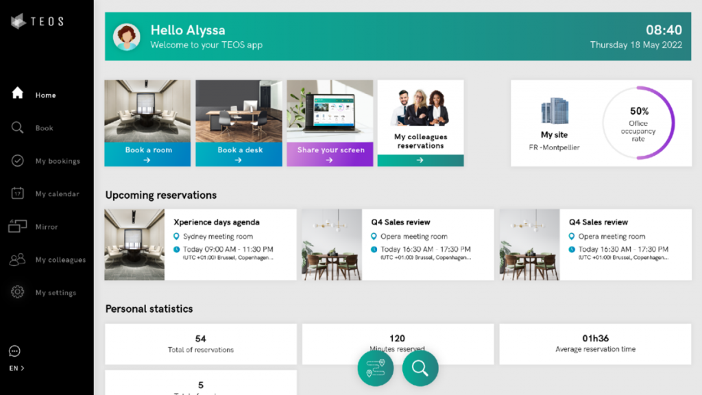 The newly designed interface can be completely personalised to the user and shows capacity at the office before you set off on your journey, available car parking spaces and whether refreshments can be ordered to your meeting room.